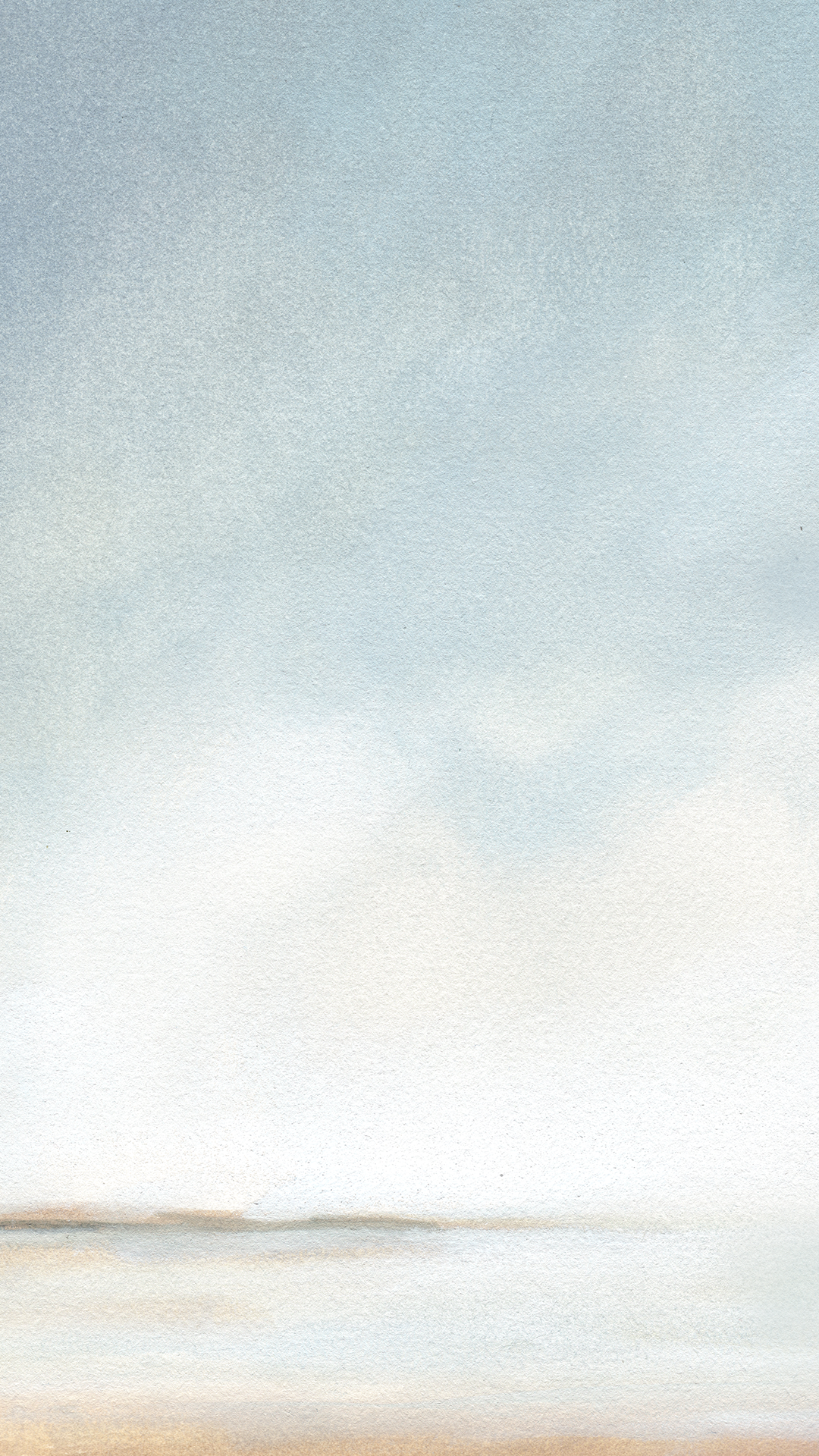 Hi Friends! It’s Jess from Jess Blazejewski Fine Art, with a new free backdrop for your tech. Summer is here, and considering how weighty the news has been lately, I think we could all use a break! I painted this soft and soothing beach landscape for the relaxed vibe I’m craving lately. Simply select your favorite version of this ocean backdrop below & just click the link to download.