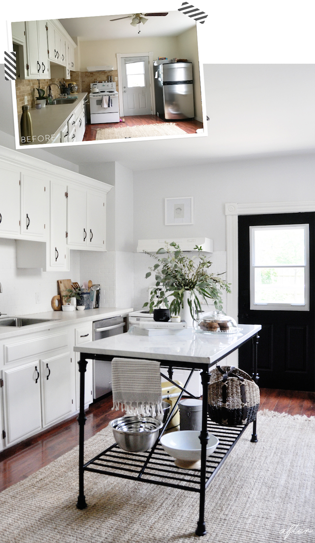 I can’t quite tell, but did you change the work tops too? Or do they just look brighter because of the now white walls?