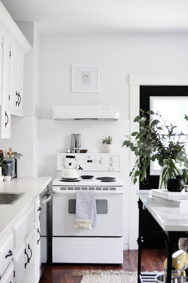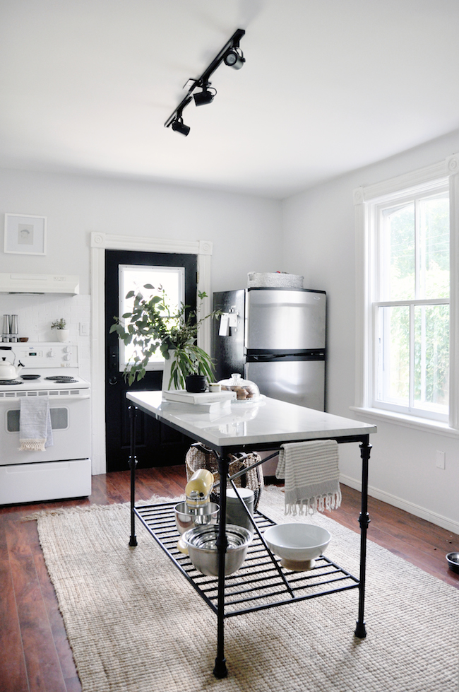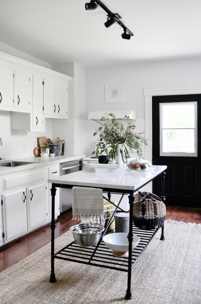 From there, I began to play around with all of the fun and frivolous bits. Because I didn’t want to spend a ton (since it really is just phase one of a two phase ordeal), I decided to pick up just a few key pieces, all while keeping our budget in check. This island was just the right scale, came at a digestible price point, and truly transformed our space. The hint of black, much like our back door, helped ground everything, while the added counter space has been an incredible addition. The fact that it’s really pretty certainly didn’t hurt, mind you. Form and function at its very best.