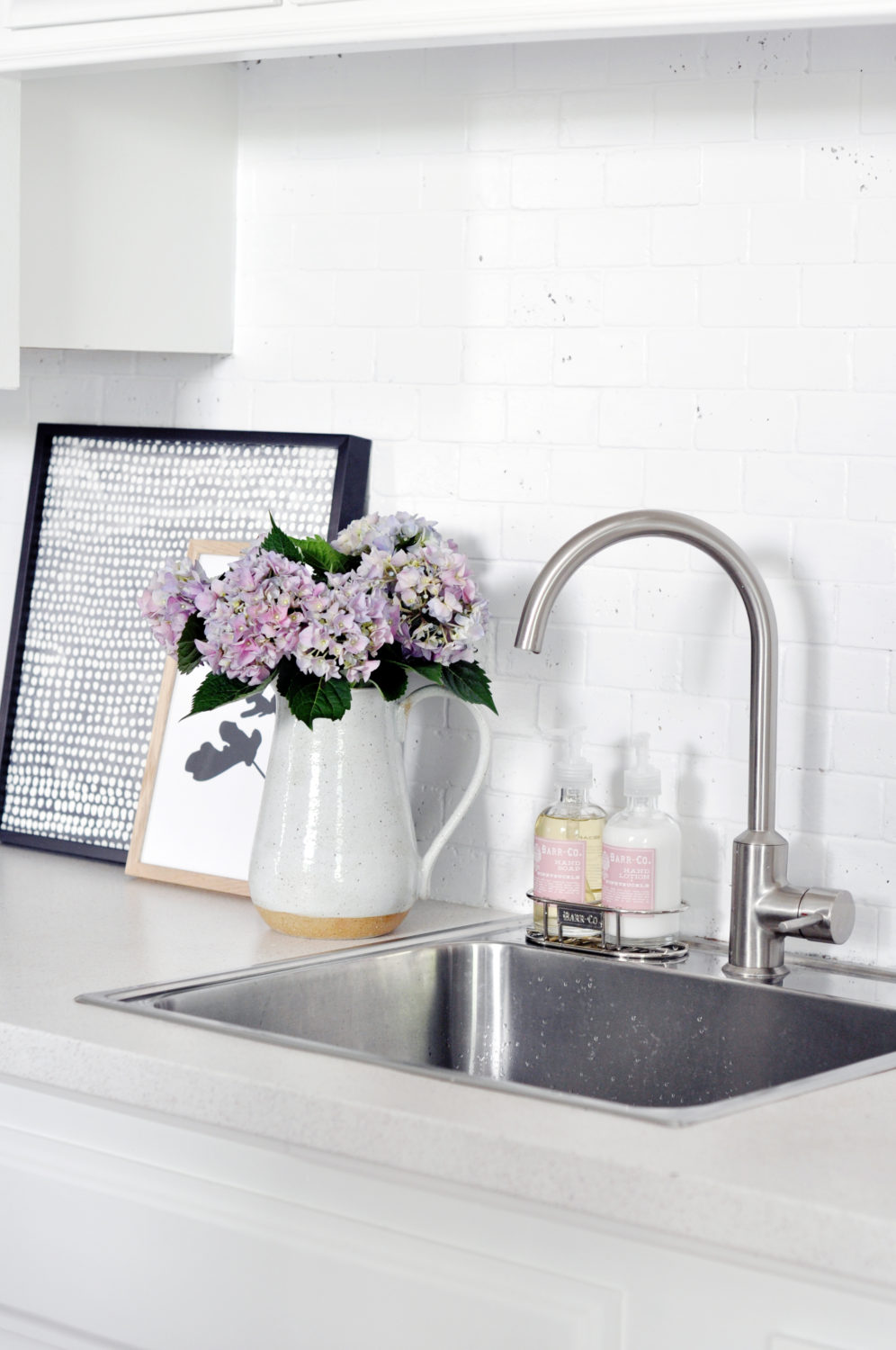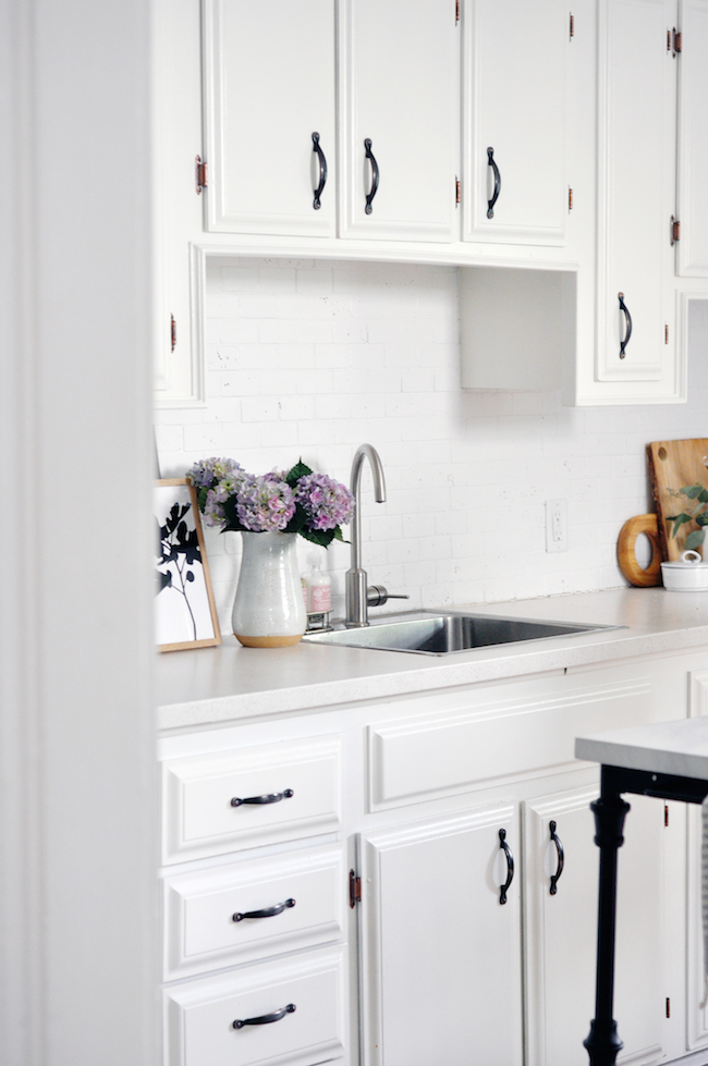 Love it! Great idea to paint the backsplash–it looks amazing in white!