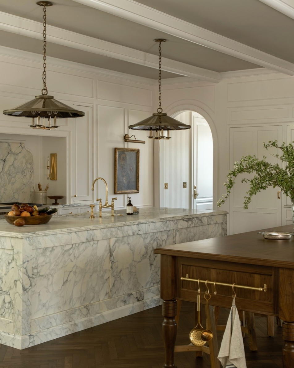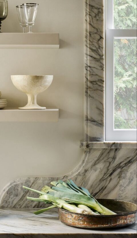 Marble isn’t just for countertops and floors. Lately I’m noticing it in bolder and bolder ways. Clad kitchen islands, bathrooms, matching door casings, or intricate backsplashes… it’s being used boldly and beautifully as a material anchor.