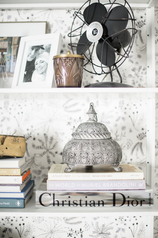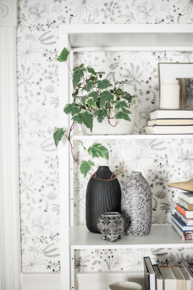 I also love the way you left the shelves backless so the wallpaper shows behind them.