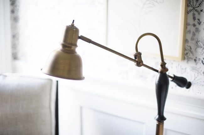 While I conduct the majority of my work like a grown up at my desk, I adore the cozy corner that I’ve carved out for myself. I picked up the most gloriously comfortable oversized lounge chair, in a timeless silhouette, from Plaidfox that just barely fit up our stairs*. We repurposed an old floor lamp that we found in our creepy attic. And we topped it all off with the most beautiful poof, handmade by artisan women in Beirut, from Métis.