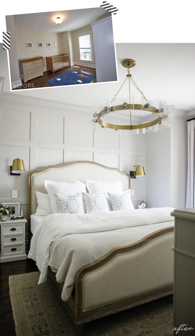 Your bedroom is GORGEOUS! Love the reveal – and that light fixture! What a beauty.