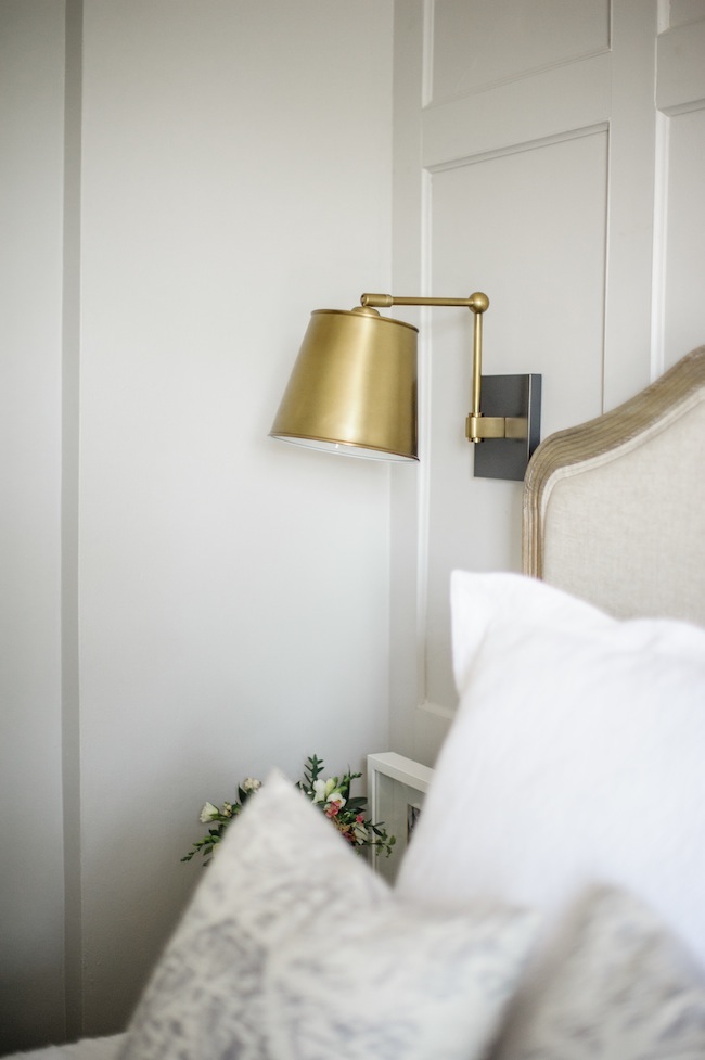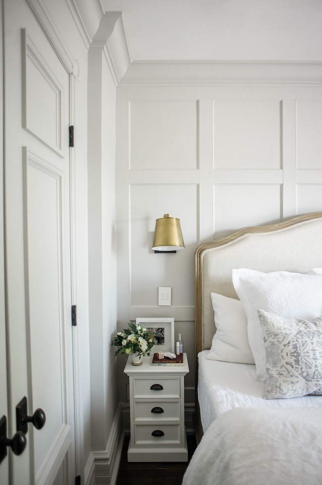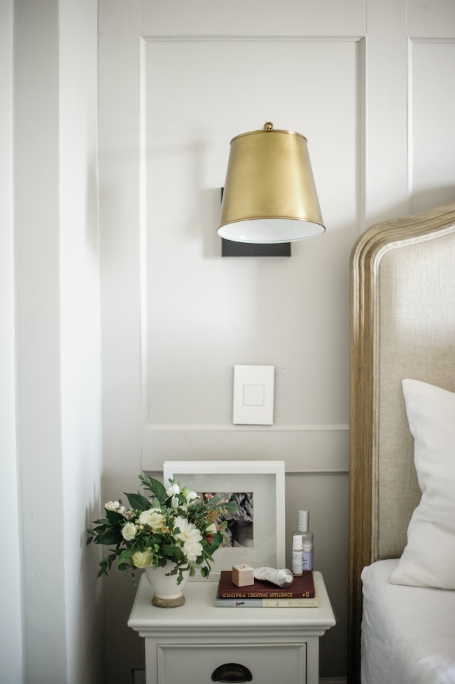 However, our ginormous bed and our tiny bedroom ultimately meant that we were left with very little space for nightstands. We ended up finding these little guys, which have a tiny footprint, but three drawers – which is perfect for tucking all of the unsightly things away. And because I knew we’d be left with very little counter space, we opted to install wall sconces on either side of the bed. Each sconce is separately switched, and said switch is located right next to the bed – which is perfect for late night reading. I don’t think I’d ever live without a soft tap light switch next to me again. Apart from our aforementioned bed upgrade, this little addition has become the ultimate luxury and has made all the difference in the world.