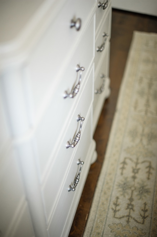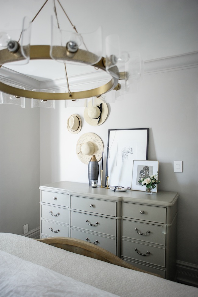 Opposite our bed, you’ll find the largest dresser I could get my hands on, that takes up as minimal of a footprint as possible. As mentioned, storage is at a premium around here, so not only have we purged virtually everything we own (which, in all honesty, deserves it’s own separate post), but we also made sure to include as much drawer storage as physically possible. This dresser is like the Mary Poppins’ purse of dressers. It holds an incredible amount, and looks pretty darn good while doing so.