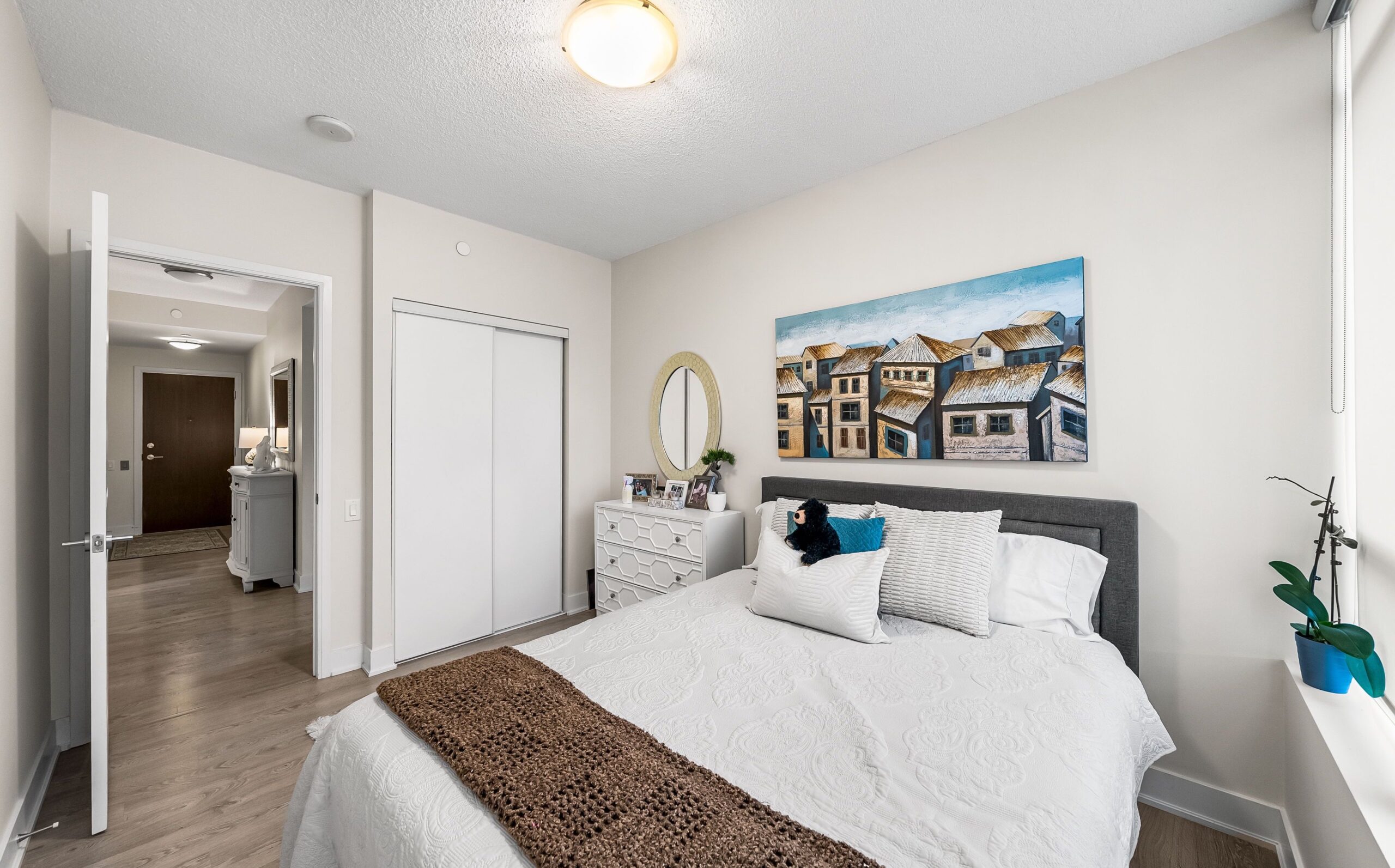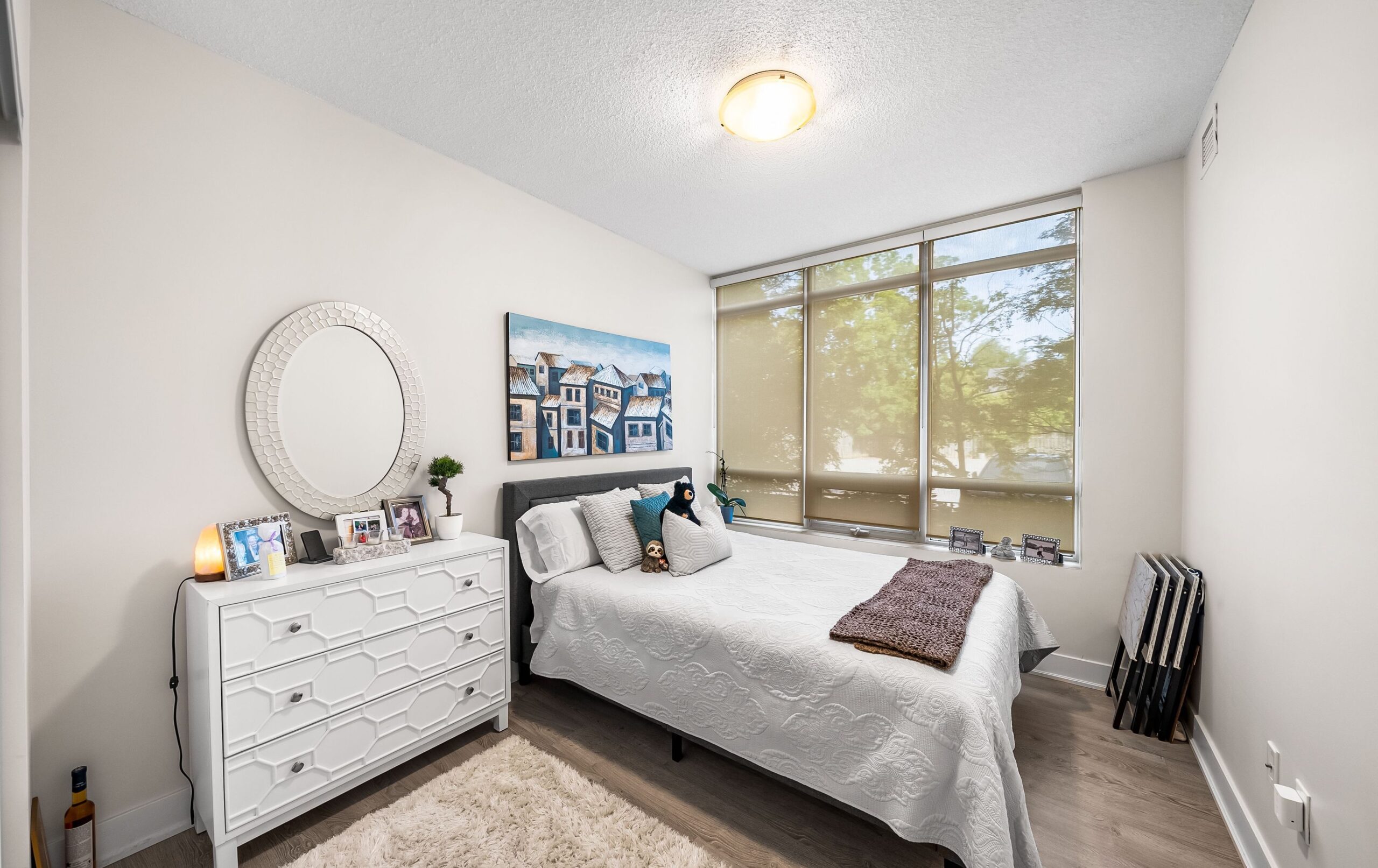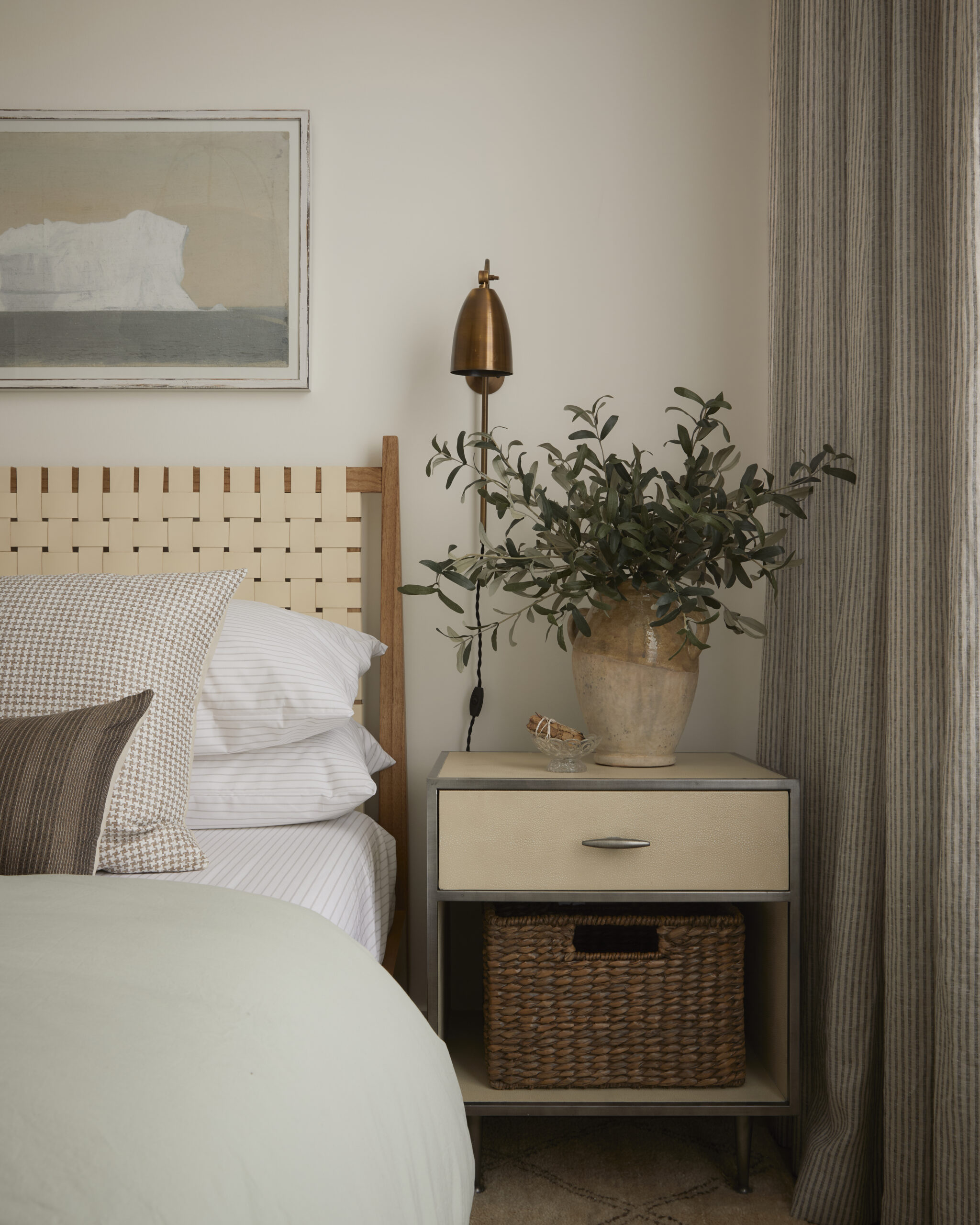 This room is proof that when you invest in the right pieces, they can work beautifully for years to come. We reused the bed and side table from a previous project with this same client (still going strong!), and simply layered in a few fresh updates to give the space a new energy. A warm rug, sculptural lighting, and textural bedding brought it all together.